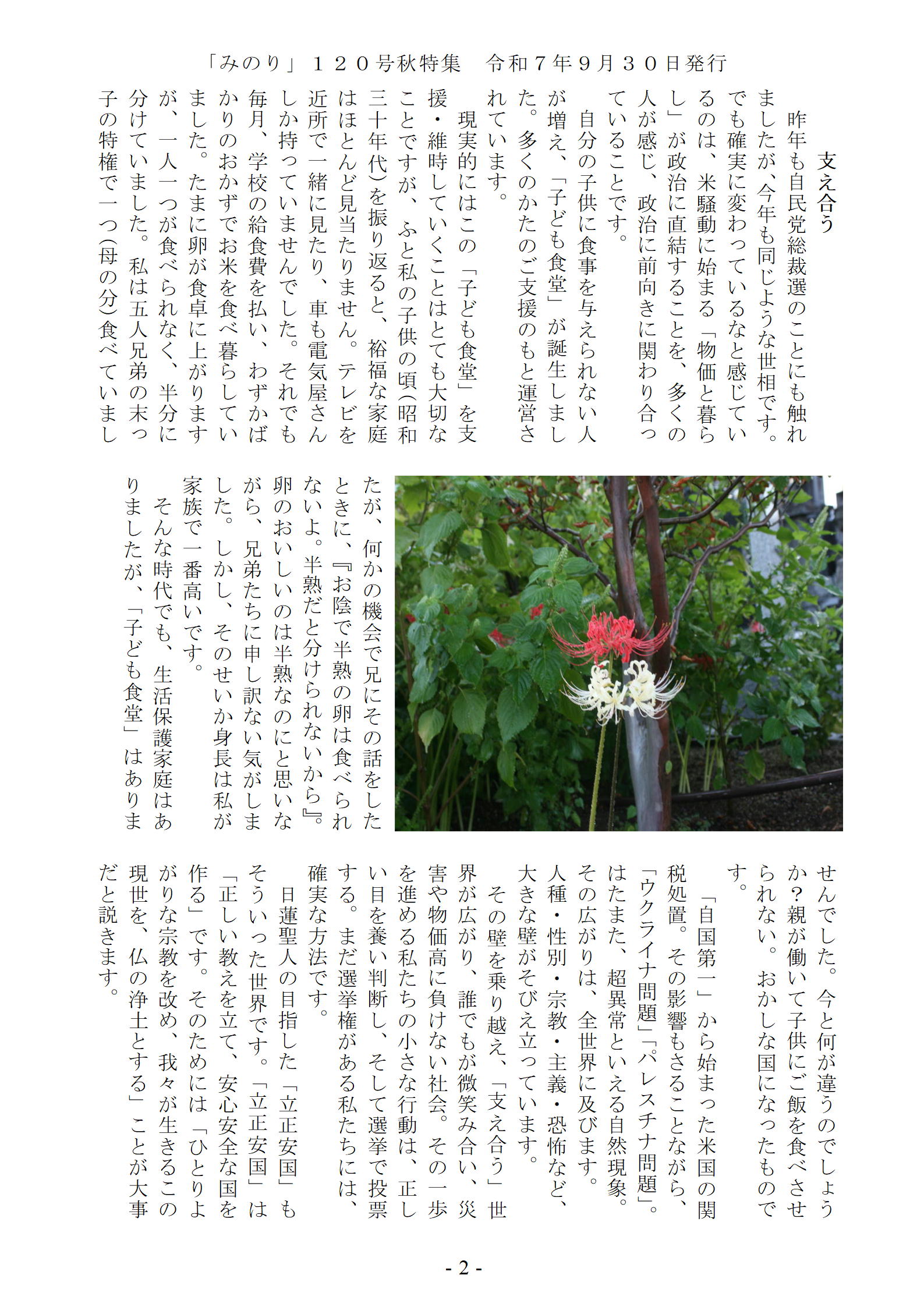サイトの更新”みのり”第114号”花まつり”特集を掲載しました。